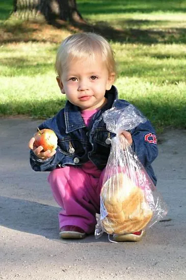 Here is a picture of Angelina taken on a walk at a national park in Estonia - Kadriorg. She very much likes to feed birdies, and always takes along plenty of forage for them.