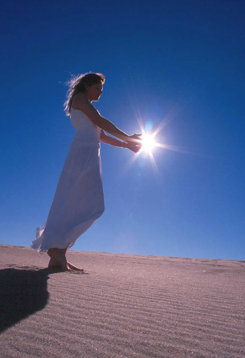 This is a picture of my wife taken in California. We had a lot of fun taking it to see if we could get the sun in just the right location to make it appear she is catching it.