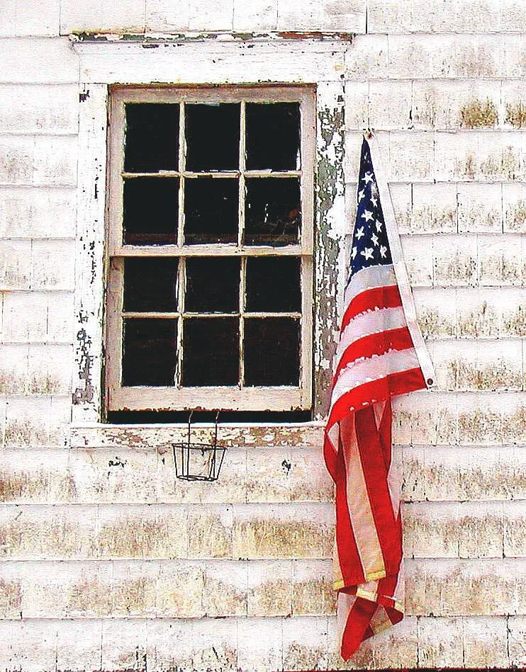 I took this picture the very first day it snowed in December. The brillant colors of the flag, aganist the old white building was such a contrast. I also worked the colors and processed it as a watercolor.