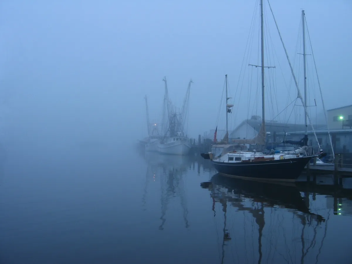 This was taken in May 2003, overlooking the town harbor in Oriental, NC. This is where I call home but it is a vacation destination for many. The town dock sees hundreds of sailers each year traveling north to south and back again. Oriental is a favorite stop over. Right at sunrise the colors are awesome. I 'm always looking for unusual boats at the dock. This image is special to me because this is what I think of when I think of Oriental, a mix of sailboats and work boats.