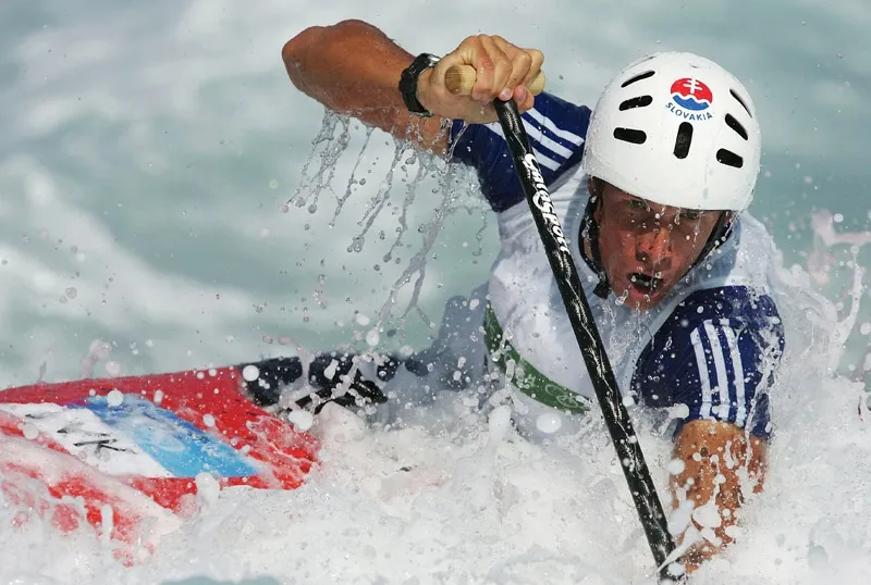 Michal Martikan, of Slovakia, navigates the course during the Men's Kayak C-1 Single's event. The sport reached the Olympic Games in 1924. Almost half a century later, in Munich in 1972, canoe/kayak branched out into the dramatic whitewater version, the slalom. Slalom events, involving men's K1, C1 and C2 and women's K1(denoting one or two paddlers in a canoe or kayak), require the paddlers to negotiate 20 to 25 gates in turbulent water over a 300-meter course.