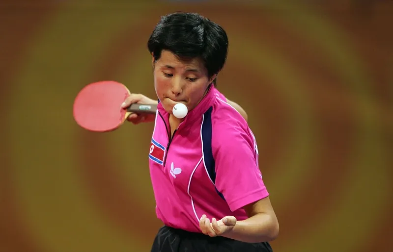 Table Tennis can be referred to around the globe as; Gossima, Whiff-Whaff, Flim-Flam, and Ping-Pong. It has been an Olympic sport since 1988. Pictured is Hyang Mi Kim of Korea as she serves during the Women's Singles Table Tennis quarter finals.