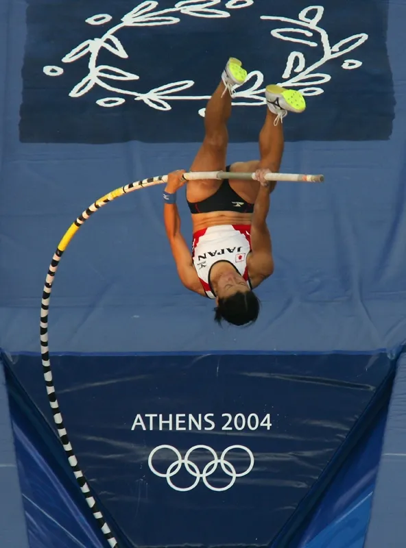 Takayo Kondo of Japan catches some air in the Women's Pole Vault Qualifying Round. The women's pole vault and hammer throw debuted at the Sydney 2000 Games.