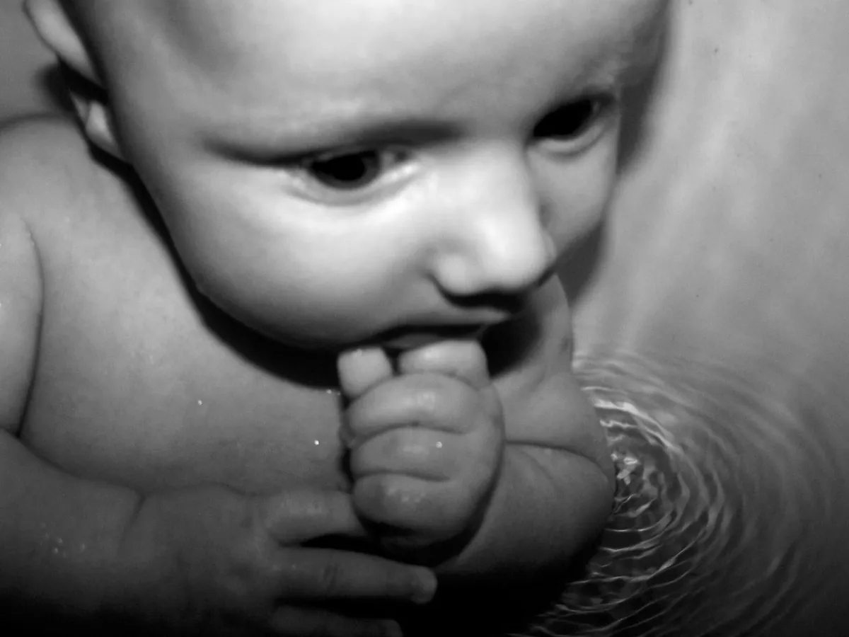 This is a picture of my three month old son. I took the picture when he was having his bath. It looks like he's still in the womb.