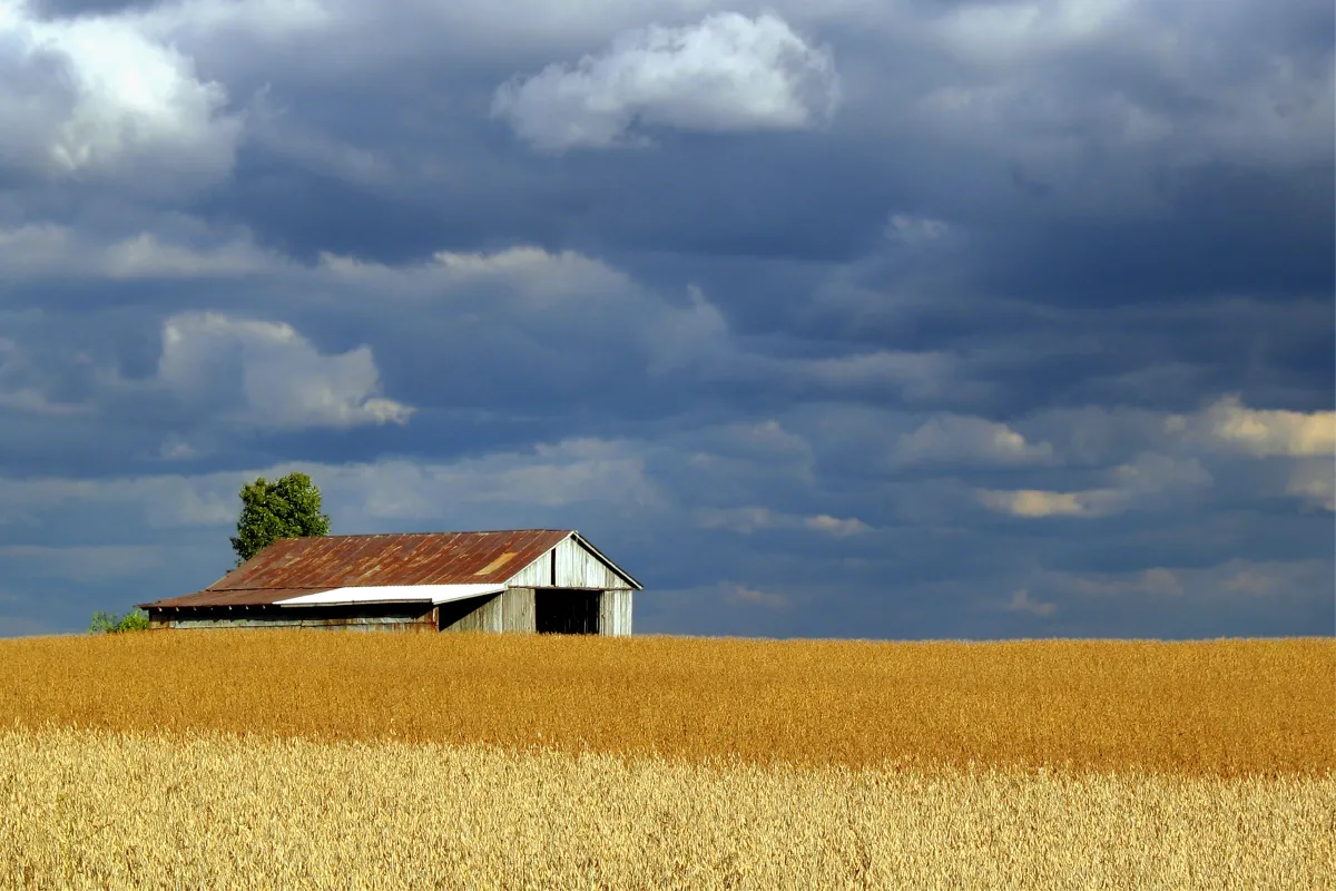 I just love the contrast between the bright, sunlit foreground -- and the ominous, dark and foreboding stormclouds in the distance. I took this picture in October, on my drive to work near Keeler Township, MI.