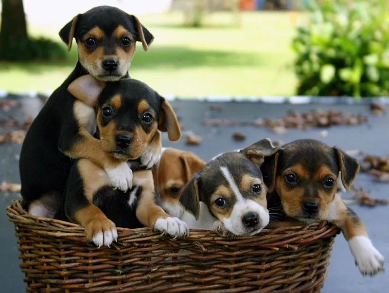I love this photo because it's a brief moment when all five of my Jack Russell puppies are actually still: they were just waking up from a nap. They're usually boundless bundles of energy. I took the photo in my backyard on Sunday, Aug. 29, 2004.