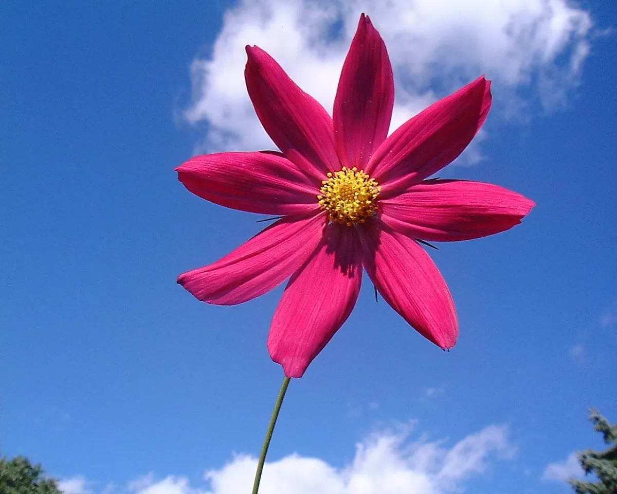 This flower, just like one of thousands in my garden -- but this one just stood out against the clear blue sky.