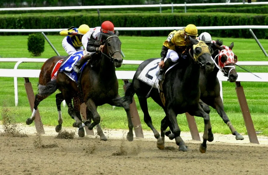 Taken at Belmont Race Track during the Belmont Stakes, 2004. I thought it was interesting that there are 16 hooves in the photo, and very few of them are on the ground.