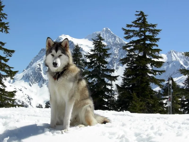 Here's a picture of Bella, our malamute - wolf-like in appearance but soft in personality.