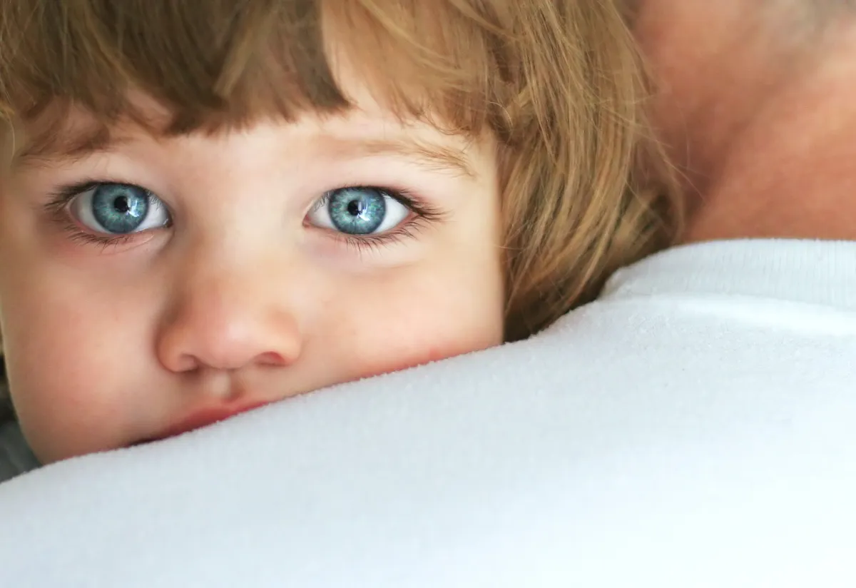 This is a picture of my daughter with my husband just after he'd picked her up from her afternoon nap. She was snuggling on his shoulder and didn't like her "daddy time" being interrupted!