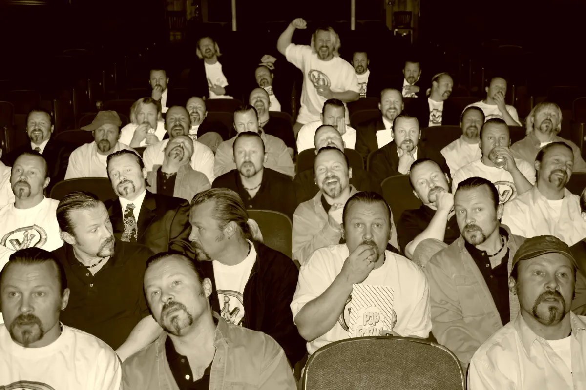 This is a composite of over 30 photos, all taken in succession on September 20, 2006, in the Buchanan Theatre, Buchanan, VA. This is a self-portrait (yes, all of those people are me) that was inspired by a Self-Portrait challenge on DPChallenge.com.
