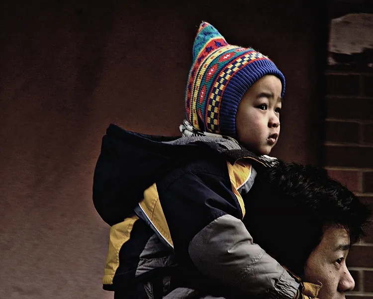 I went to see the Lunar New Year's Festival in China Town in Philadelphia. While waiting for the dragons to arrive, I took several shots of the people waiting and walking around the area. This is one of them. The child's hat caught my eye and I turned around and managed to get one shot and it turned okay. Happy Year of the Pig!