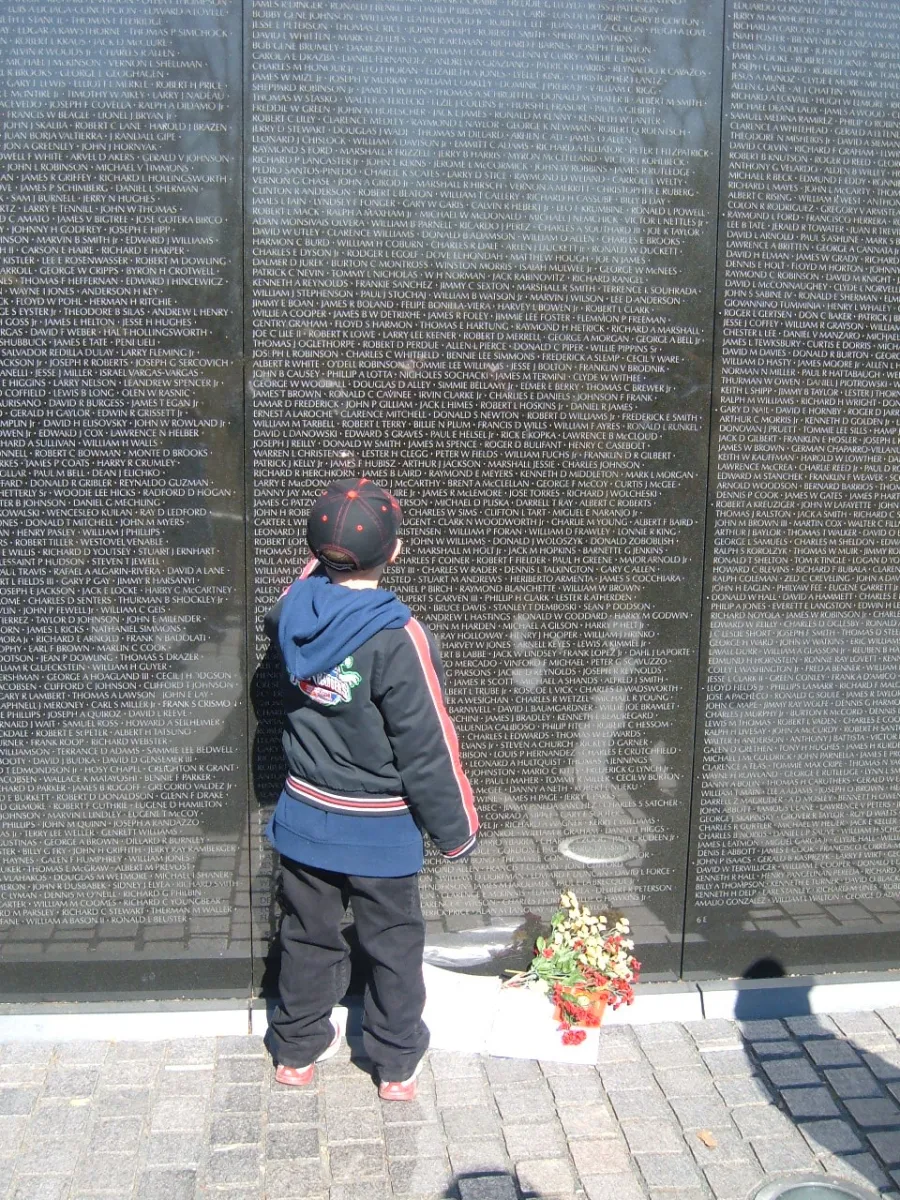 My son Heath, was genuinely proud of the names he was reading on the Vietnam Wall. By his feet, someone had just left the flowers for their family. It was touching.