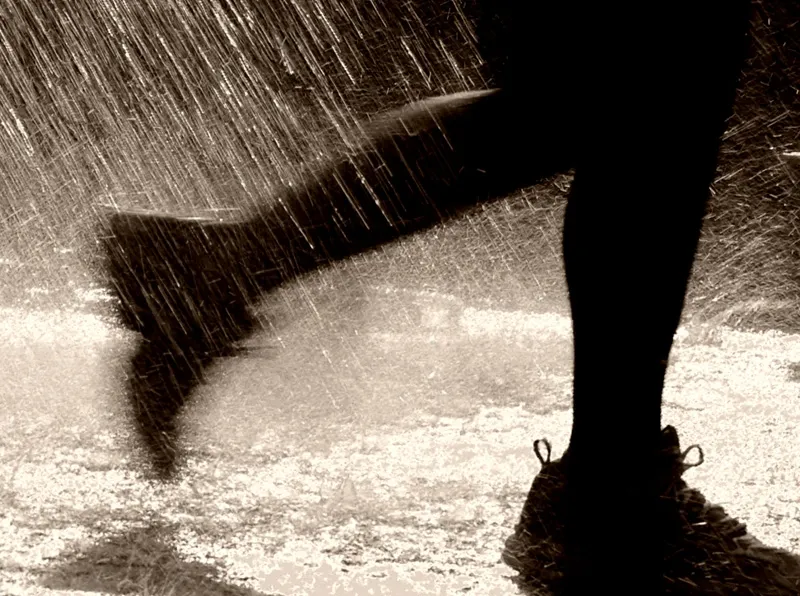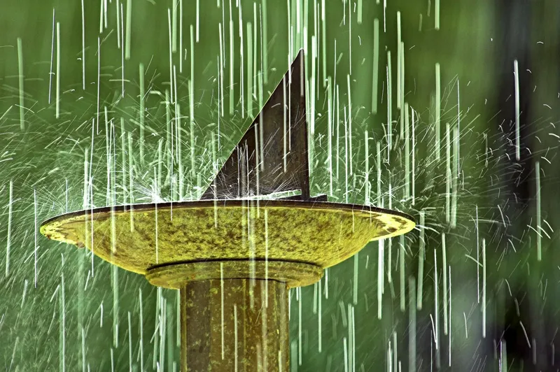 This is a shot of a bird bath, in my backyard. The rain chased the birds away; but, it attracted me to this scene.