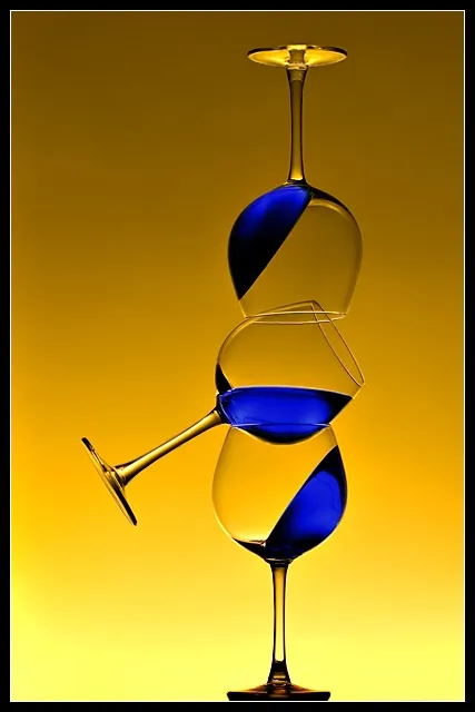 I was trying to show tension in balance, as if the slightest movement would topple the glasses (they really were stacked that way, not photoshopped). The gelatin helps with that, making it look like gravity has gone crazy.