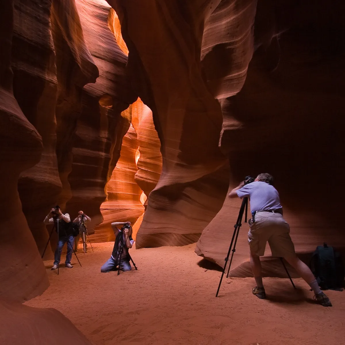 Lower Antelope Canyon near Page, Arizona. There have been many fantastic shots from this area. I think this one is unique. April 2008.
