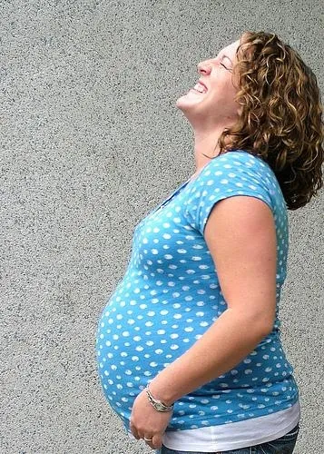 It was during the last week of my pregnancy and I was overdue. I was at the point where if I didn't laugh, I would just cry. My friend Joan took some pictures for the baby book. As she was taking them, the baby was doing what felt like cartwheels and it got me to giggling like mad. She snapped the picture and it was an instant favorite.