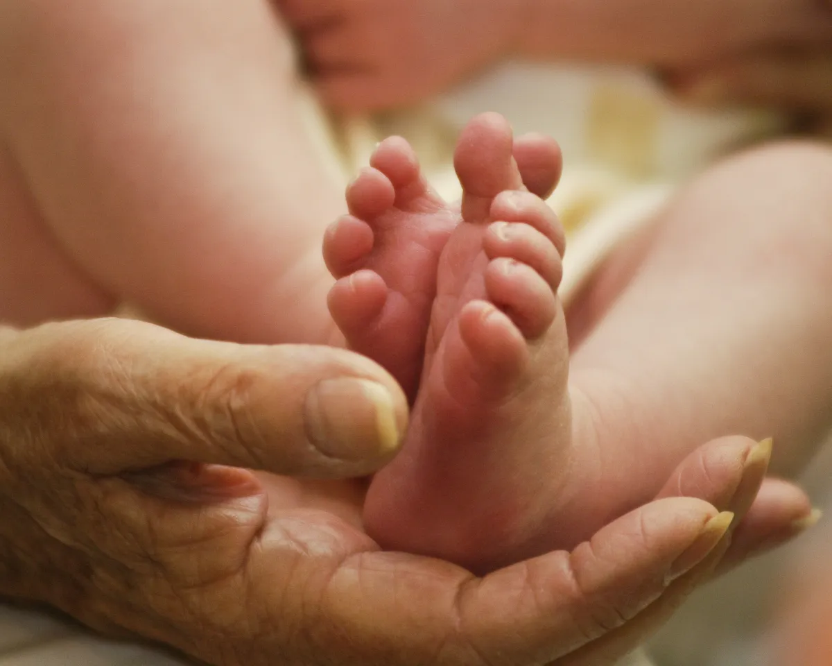 This photo was taken of my mother's hand holding my grandson's feet when he was 3 days old. It was taken August 5, 2006, the day he came home from the hospital.