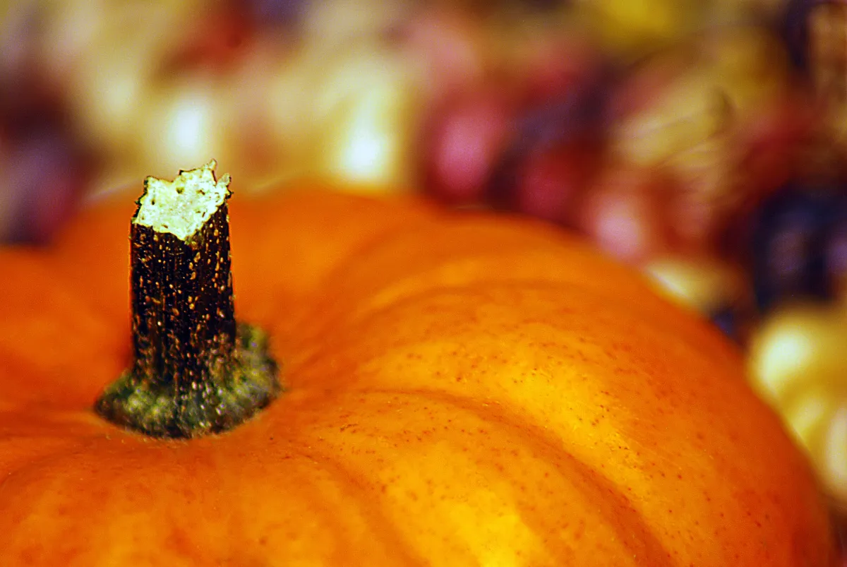 Fall is my favorite season of the year! I especially love all the colors it brings--oranges of pumpkins and the golds and reds of Indian corn; reflected also in the beautiful changes in colors of leaves on trees. I had bought the small, minature pumpkin in the foreground and Indian corn in the background for a home decoration from a local supermarket. I think the photo conveys the nature of the fall season perfectly!