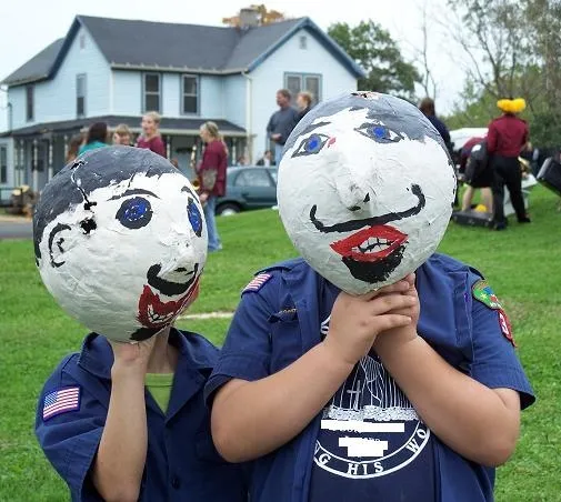 The Cub Scouts made these heads for a local parade. This is them being silly with them afterwards.