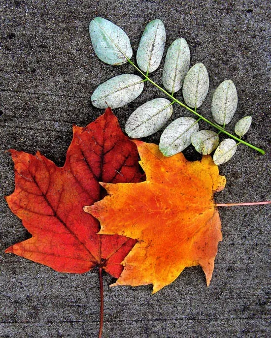 I captured these fallen leaves on the pavement as I found them.