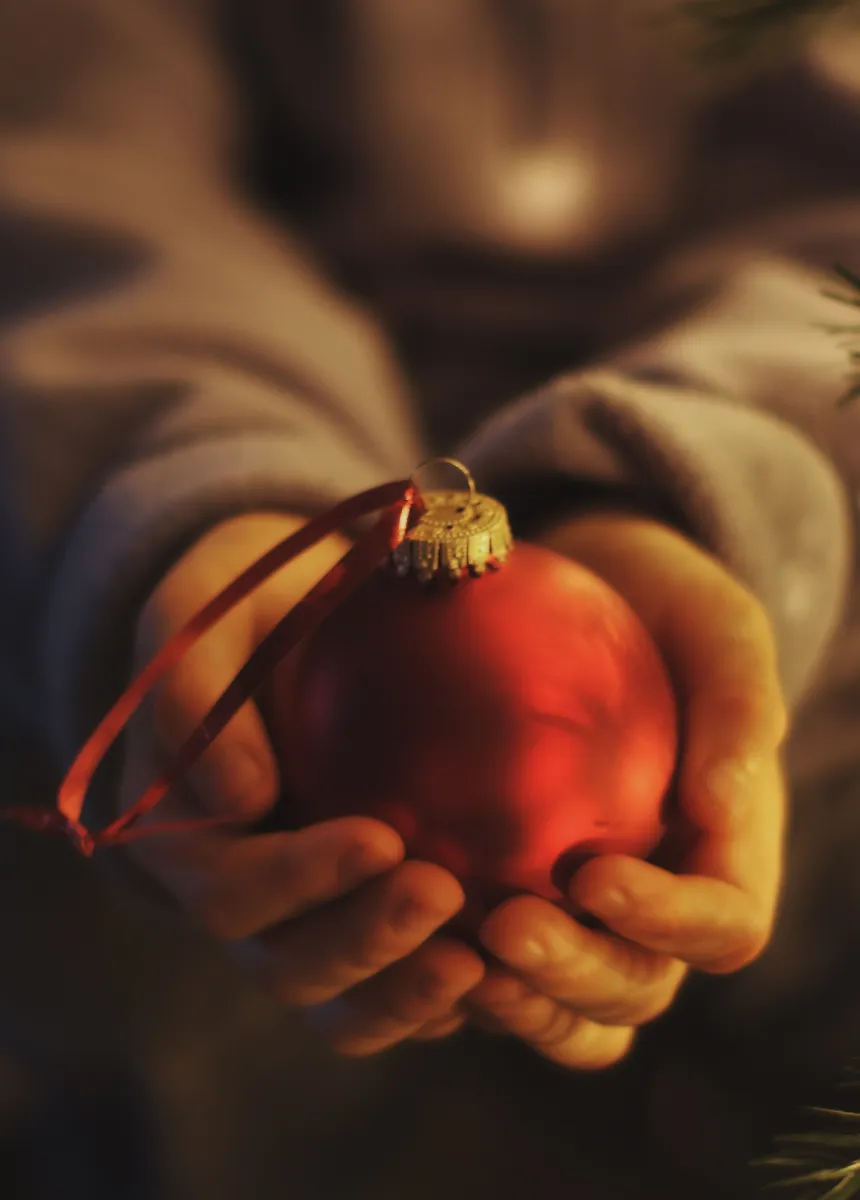 This is a picture of my son holding an ornament. I loved the softness of his hands and shirt sleeves all while the ornament was in focus. To me it represents how children are in awe of the holiday season. To children the holiday season is so magical, each experience from decorating the tree to singing carols can be gift in and of itself. I took this in my living room next to our Christmas tree.