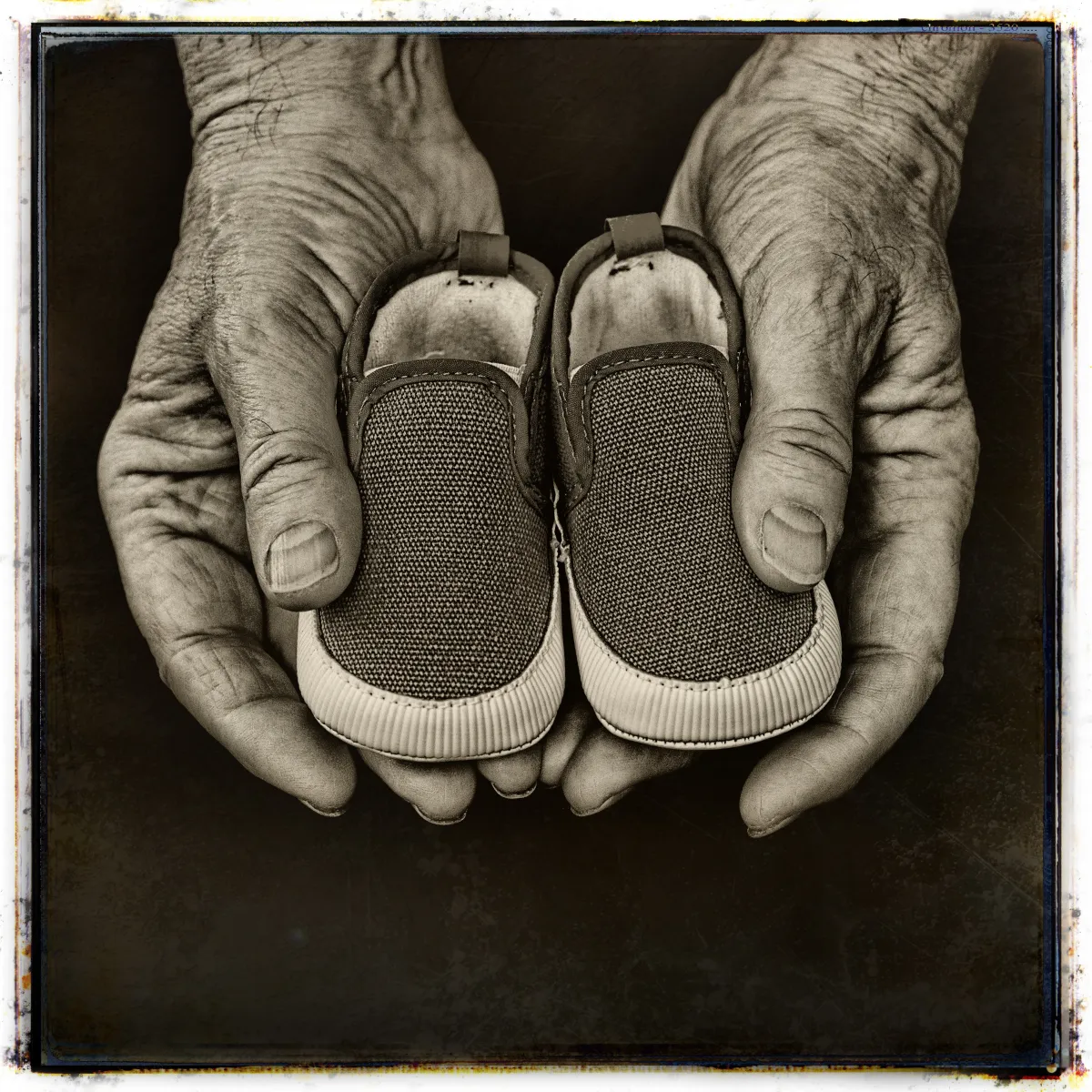 I took this picture of my friend's hands with his great nephew new shoes, Sam, who was born in November 2007. Now he's 1 1/2 years old. Time goes by so quickly!