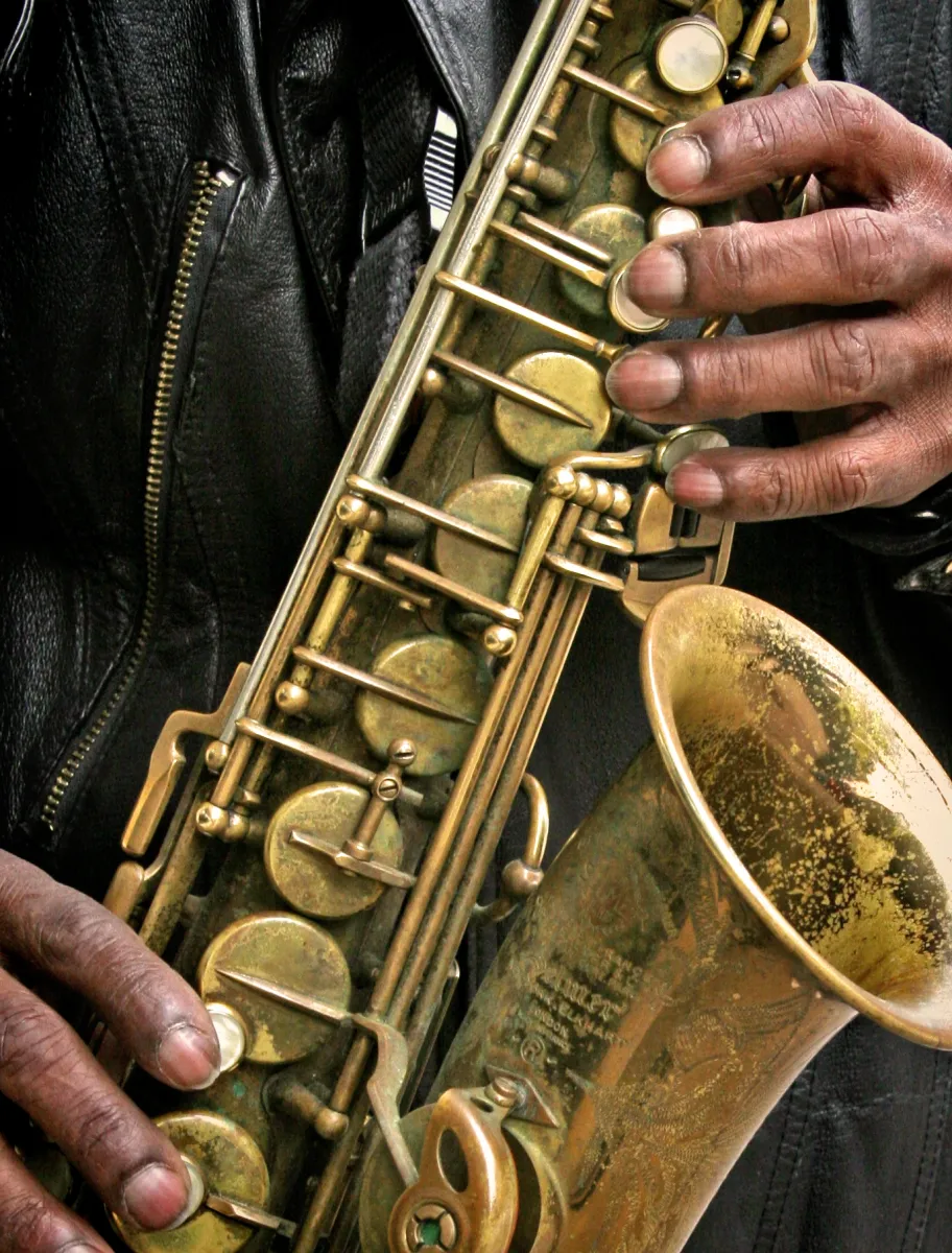 I try to tell a beautiful story in each photo while using as little information as possible. In this particular picture you can see the rugged texture of the saxophone player, and how "played" this particular instrument is. both have lived a long exciting life.