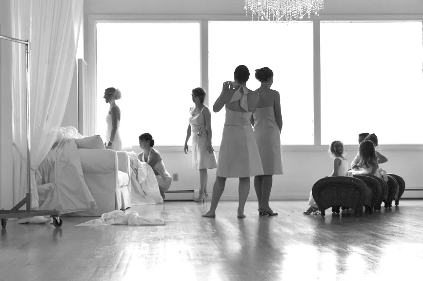 My youngest daughter was surrounded by nieces and a nephew, lifelong friends, and sisters making sure as a bride just moments away from the wedding that she would be perfect and ready. It was taken June 28 in Newport RI. As the bride's father, for me, it encapsulated my family's life in one brief moment of sharing, giving and love.