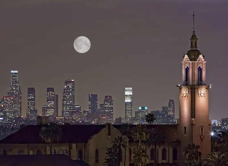 Photo Story: You are looking at downtown Los Angeles taken from on top of the Highland/Hollywood Center where the Kodak Theatre is. The church is in Hollywood.