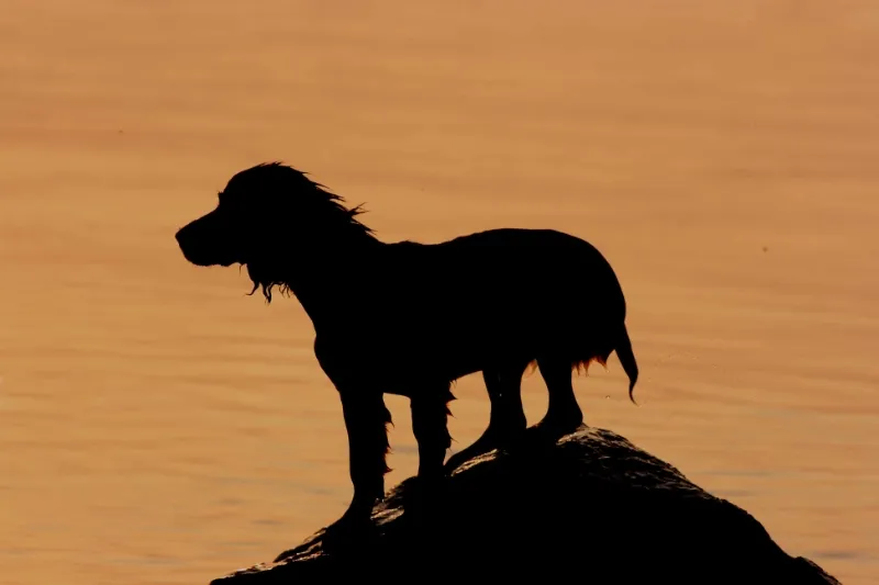 Pictured is Nikki, one of our 5 month old English Cocker Spaniels. We love to take our dogs down to the Niagara River to swim on beautiful summer nights, and she decided to "perch" on the rock and enjoy the beautiful sunset with us!