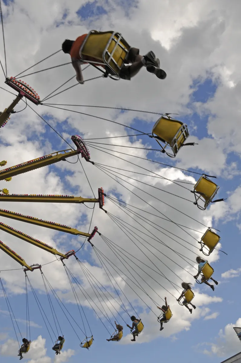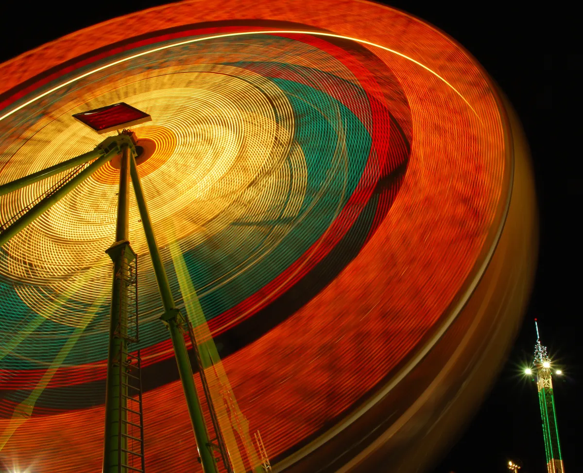 This photograph captures the excitement of flying high on a carnival ride taken at the state fair in New Jersey.