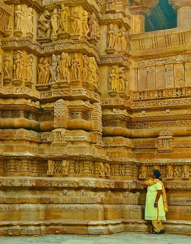 This was shot in May 2009 at Lakshmana Temple, Khajuraho, MP, India while a tourist was observing the beauty of medieval art and erotic sculpture. This temple was built during AD 930-950.