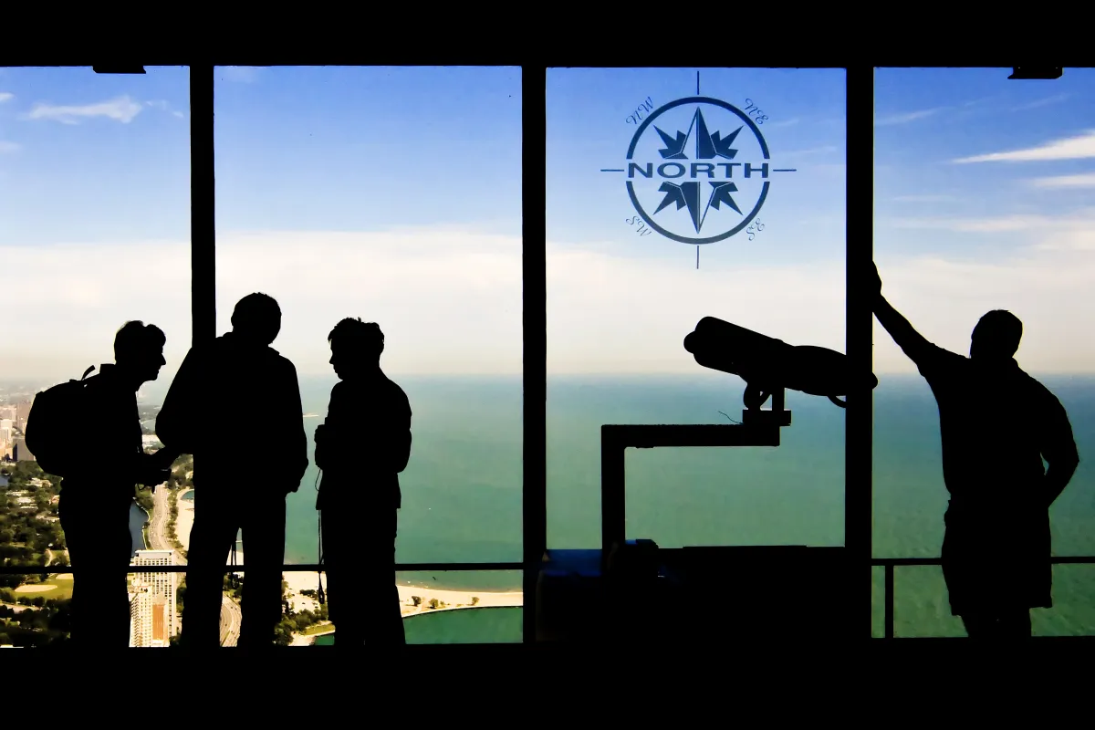 While at the John Hancock Observatory in Chicago, I saw this scene and made and exposure. I loved the way the figures were backlit against the waters of Lake Michigan and the shores of the city.