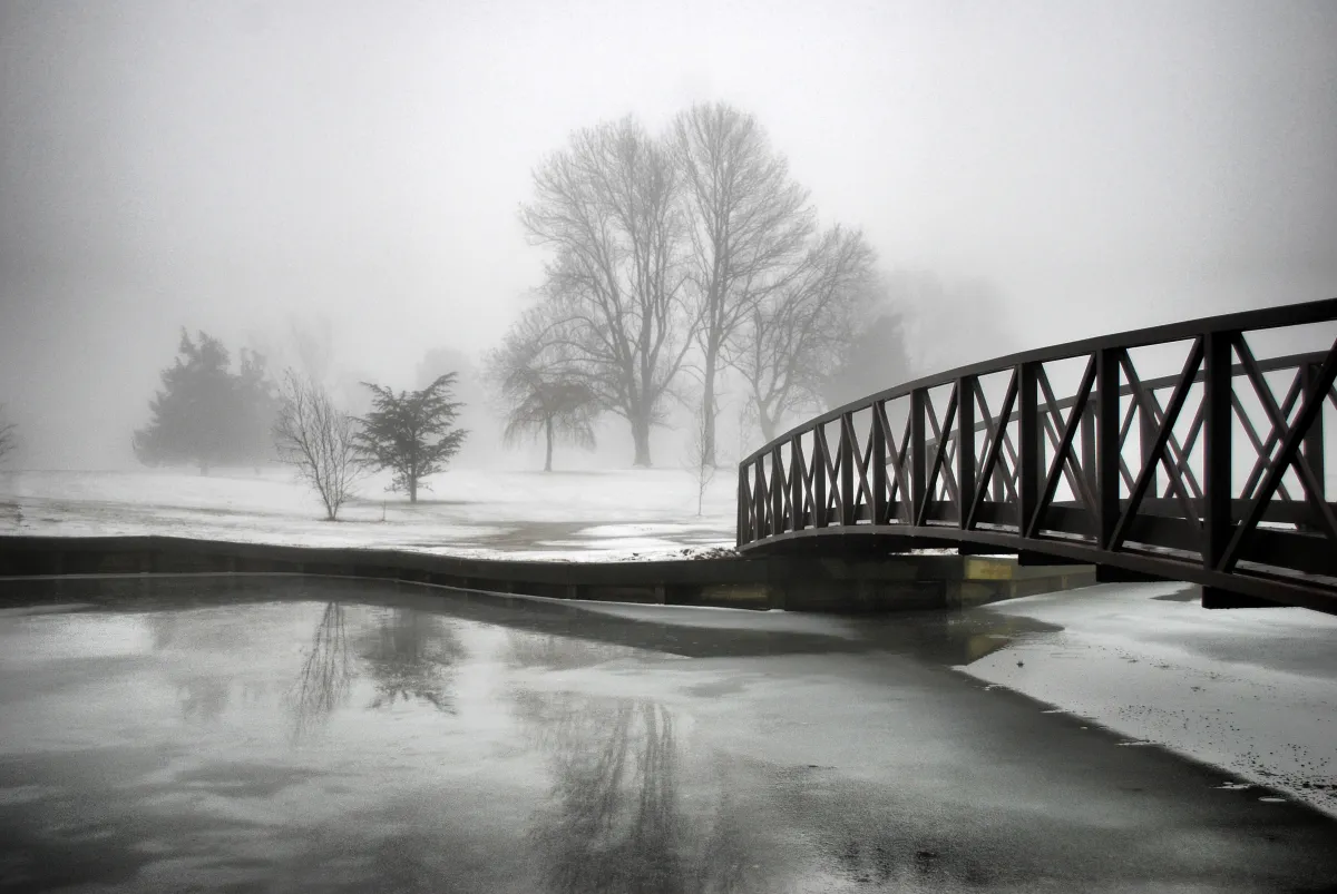 This is a foot bridge at the golf course in Ft. Dix New Jersey, taken in January 2009. I selected this photo because it represents crossing into the unknown. You can almost see what's on the other side, but not everything.