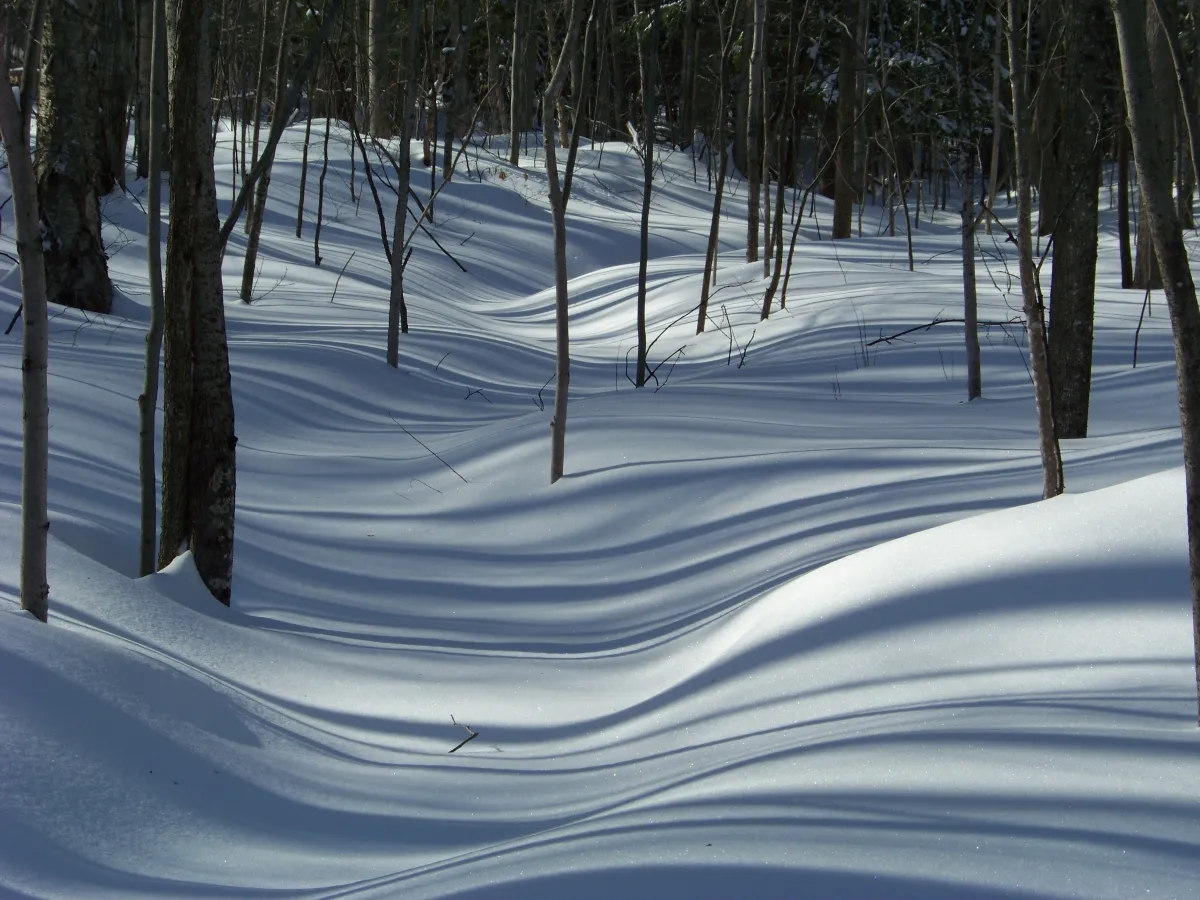 Winter in Northern Michigan can be harsh with lots of snow, cold and wind. In the woodland of our farm the trees cast undulating shadows across the creek bed. The sun make the fresh snow sparkle like diamonds.