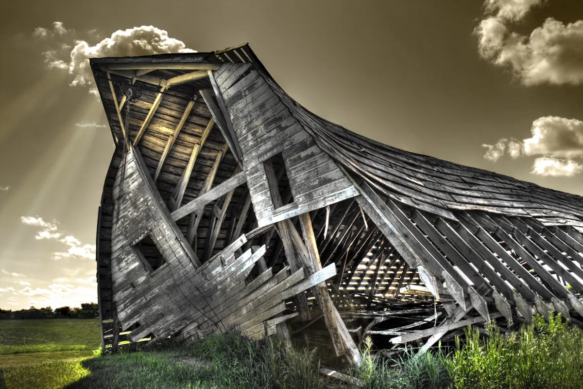 This dilapidated barn photo was shot on a farm in near Dassel, MN in June 2009 during my lunch break at work. I feel the title is very fitting because the barn reminded me of a giant animal on its last legs just getting ready to lay down for the final time. The barn had a good life but the skeleton is all that remains.
