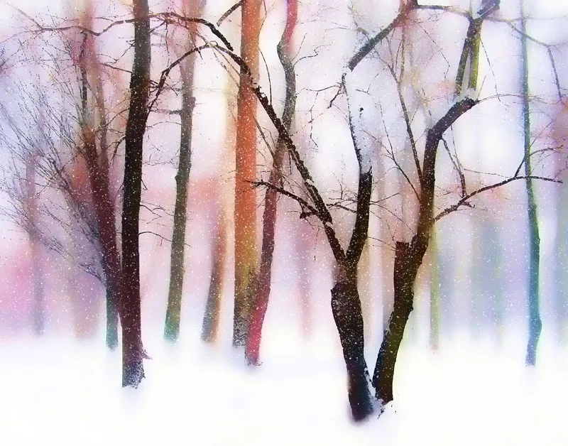 I took a photo of snow covered trees and transformed it into a colorful fantasy.