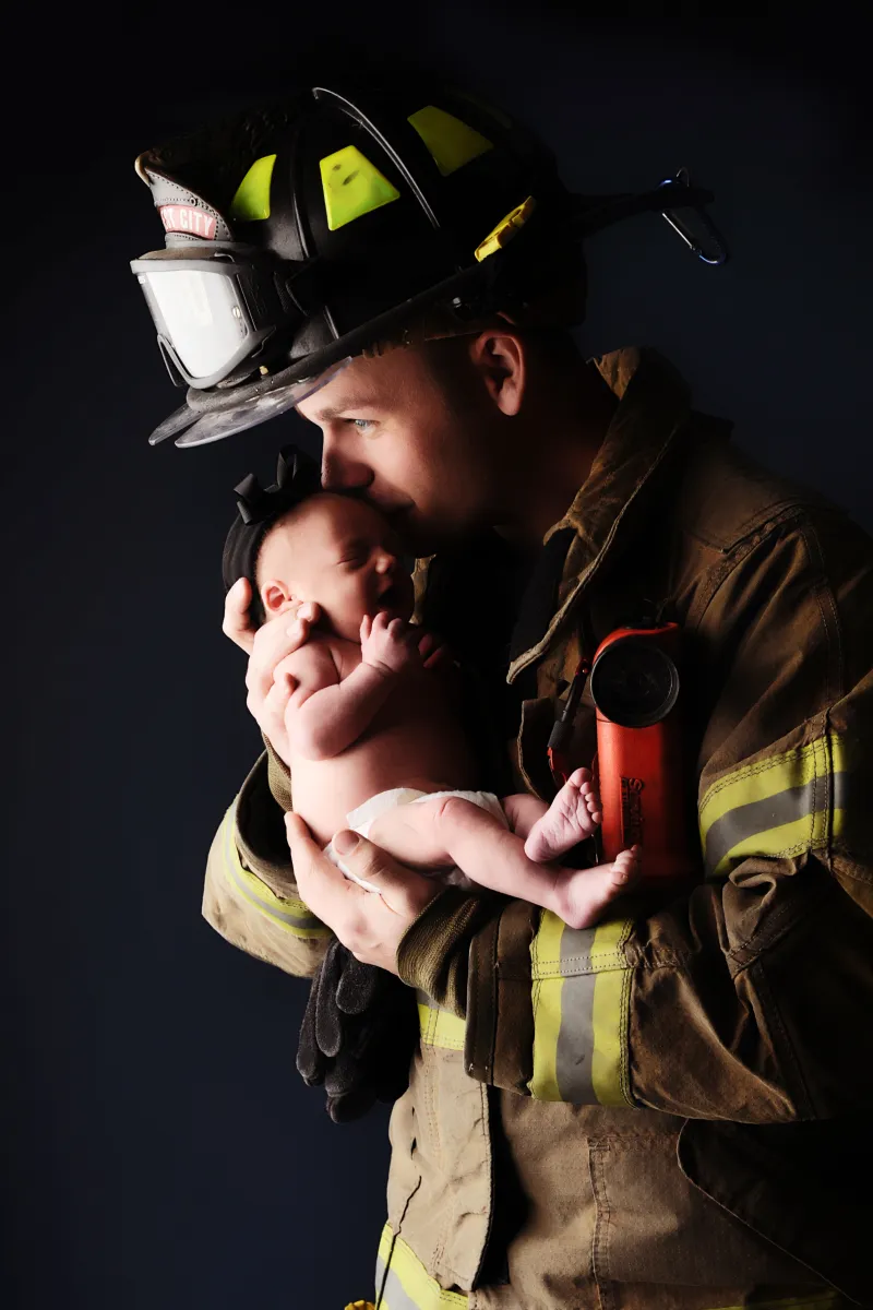 To me, this is a perfect display of why they do what they do... This firefighter is with his brand new baby girl. He's velvet over steel.