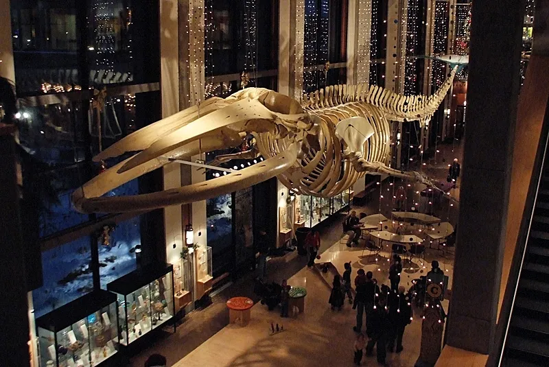 The local museum in Grand Rapids, MI stayed open after hours one night. The whale skeleton has been a "huge" part of the museum since I was a child.