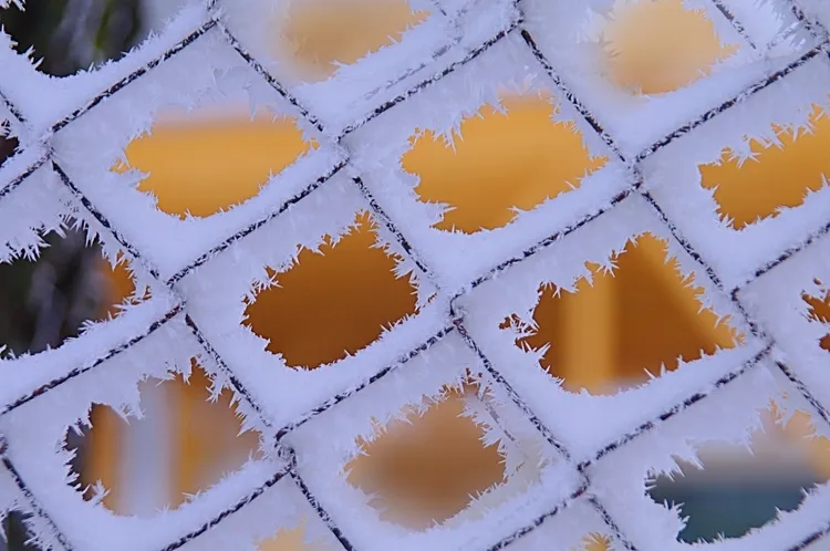 This snowy fence with the yellow house behind looked just like a painting.