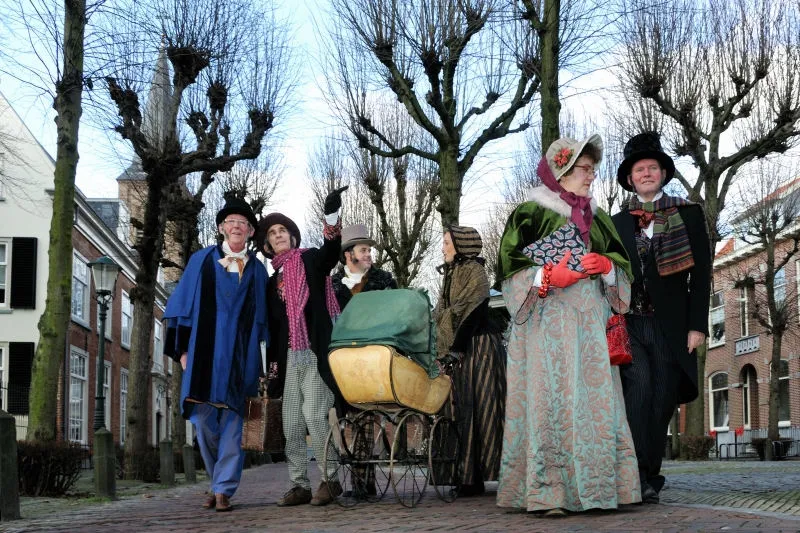 A photo capturing people with old Netherlands clothing on.