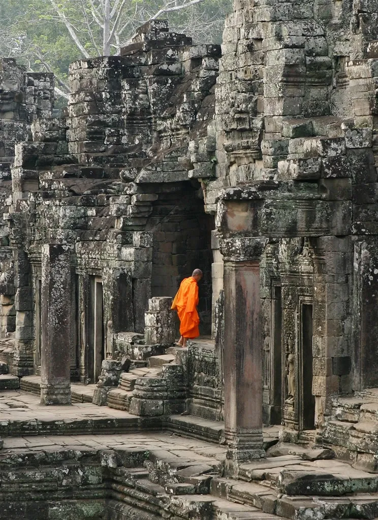 This was taken by my nephew at Angkor Wat in Cambodia in 2006, where he captured this monk entering the temple. His family (my sister) were living in Chengdu, China for a year. They went on vacation to southeast Asia, and he was always borrowing his Dad's camera. He was 11 at the time.