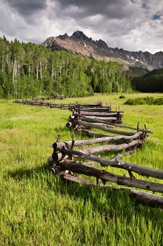 Colorado has beautiful fences that photographers can use as leading lines. This one is in the San Juan Mountains, near Ridgway, Colorado. I like the zig-zag effect of the fence leading to Mount Sneffels.