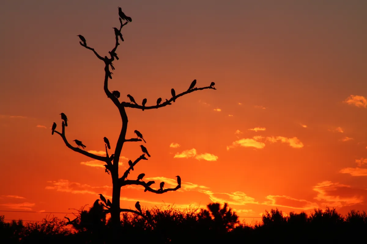 During the daytime this dead tree is nothing, yet as the night approaches, it becomes a home for migrating birds. What a lovely sight!