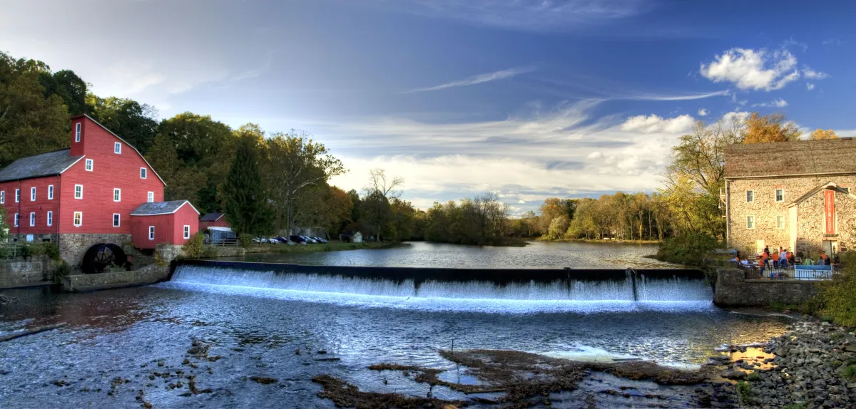 The Red Mill in Clinton, NJ is one of the most photographed places in NJ. It is said to be haunted and was featured on Ghost Hunters and other paranormal shows.