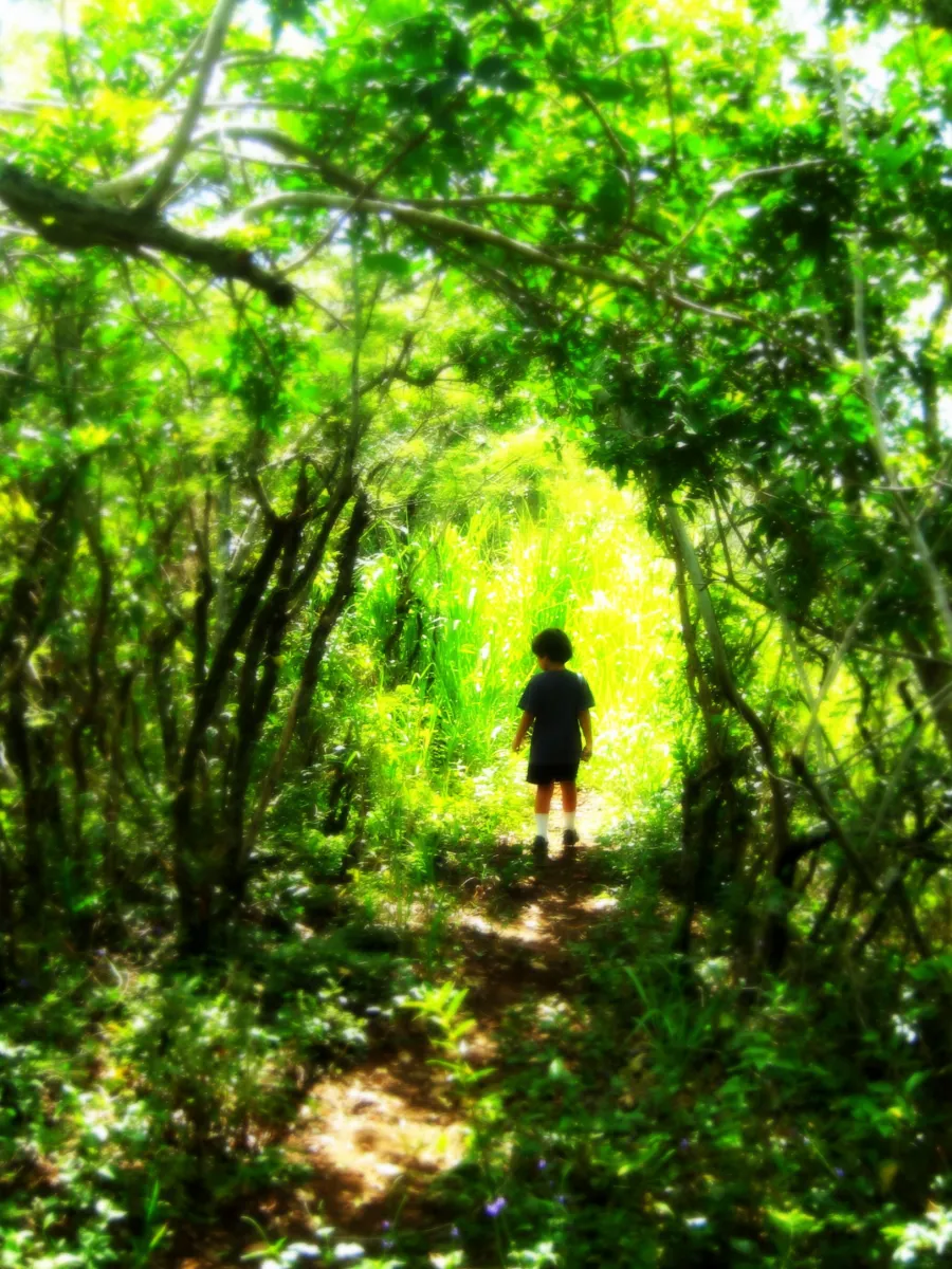 This is a picture of my cousin on a hike, Friendship Gardens, in Kaneohe Bay, HI.