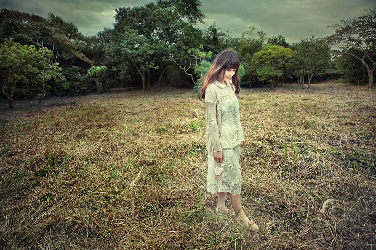 It evokes a time past. It was taken at a vintage train museum. The image could be any woman traveling in the past but it is unclear where she is going, how long she has been waiting.