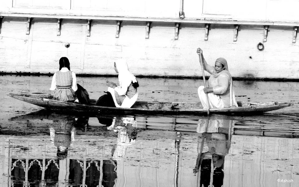It is an attempt to capture the life of Kashmiri people. A mother is rowing her kids (GIRLS) to school to make them future ready.