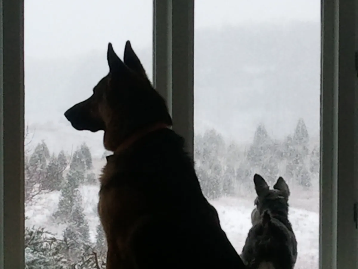 Winter in Wyoming where the wind blows the snow horizontally from the North first, then from the Southwest.
